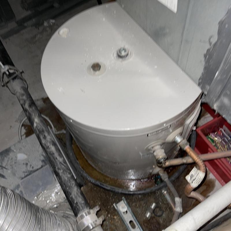 Tribeca Plumbing inspected a leaking water heater in Dallas, Texas. Technicians shut off the unit, identified a possible vent blockage, and planned a camera inspection. They prepared to replace the unit pending vendor pricing.
