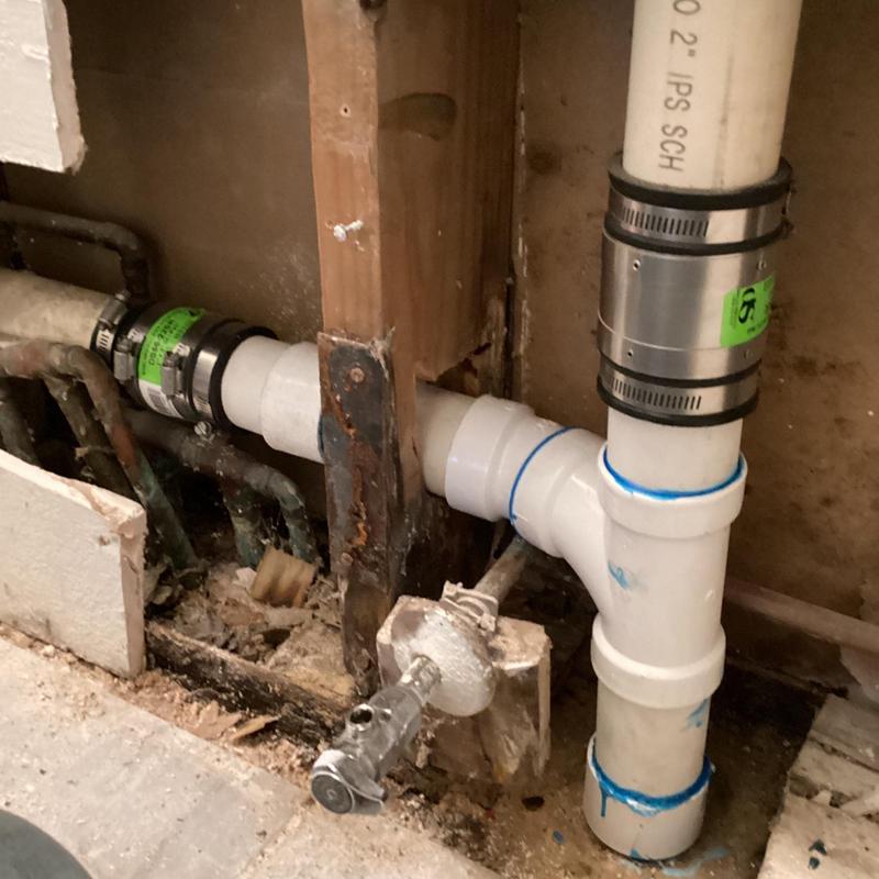 Tribeca Plumbing replaced a T-fitting and trap and installed two feet of two-inch pipe in Dallas, Texas. The team also provided a quote to repair drywall and repaint areas affected by a leak.
