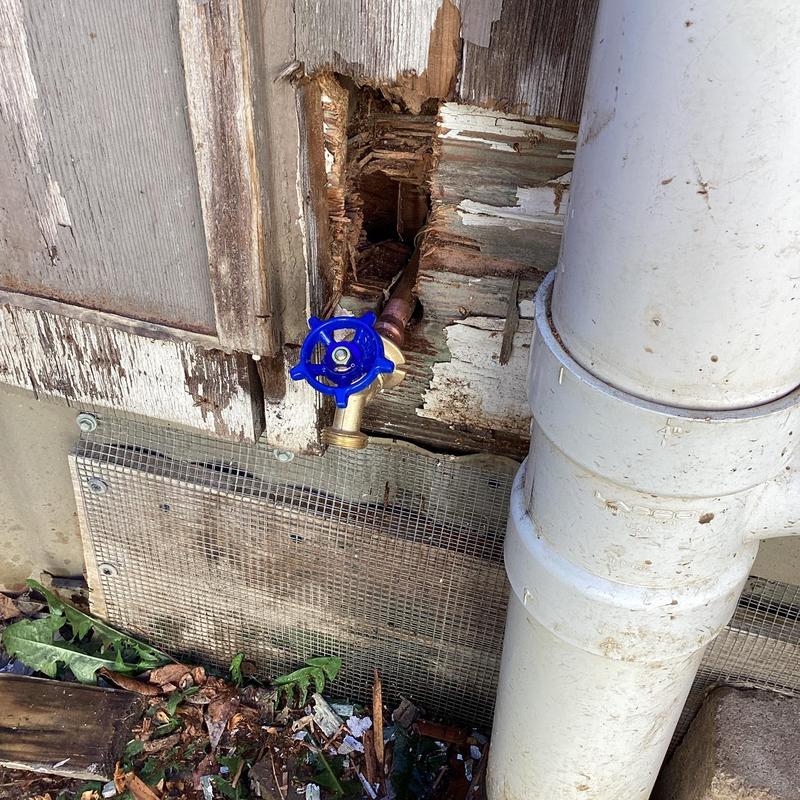 Tribeca Plumbing replaced a hose bib at a home in Hurst, Texas. The team opened the interior Sheetrock, secured the water line, and installed a drop-ear 90 fitting to allow easier future replacements without damaging the water line.