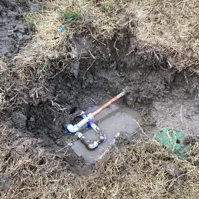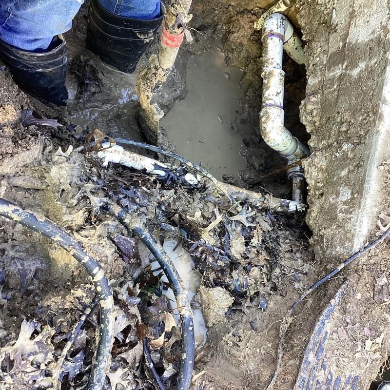 Tribeca Plumbing repaired a water line leak near the meter in Dallas, Texas. Technicians removed tree roots blocking the line, completed digging work, and located replacement parts. The team reassembled the damaged section to restore water service.