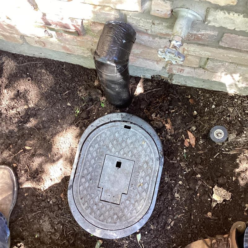 Tribeca Plumbing inspected a suspected water leak in Dallas, Texas. Water was flowing from the water meter, but the meter showed no activity, indicating the leak was likely on the city’s side of the service line. The team assessed the issue to confirm the source and advised on next steps.
