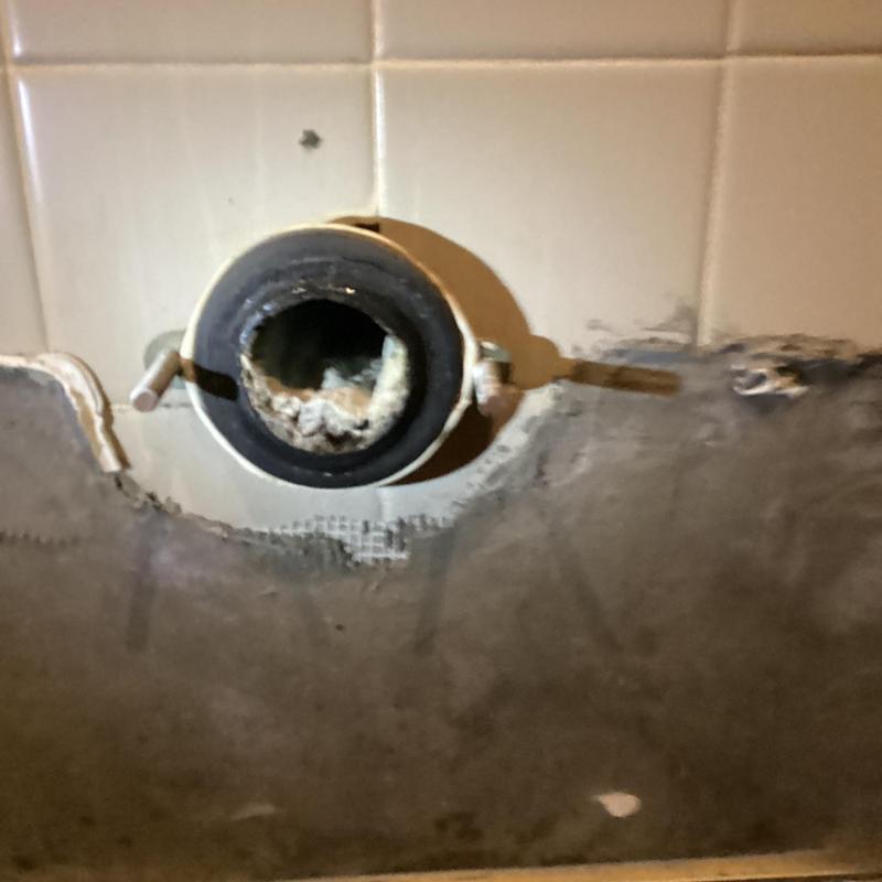 Tribeca Plumbing repaired a damaged urinal flange and unclogged a main sewer line on the 12th floor of a building in Dallas, Texas. Technicians accessed the blocked pipe by cutting through drywall and tile, then sealed the cleanout opening with a compression cap. All fixtures were inspected for leaks and the area was cleaned after service.